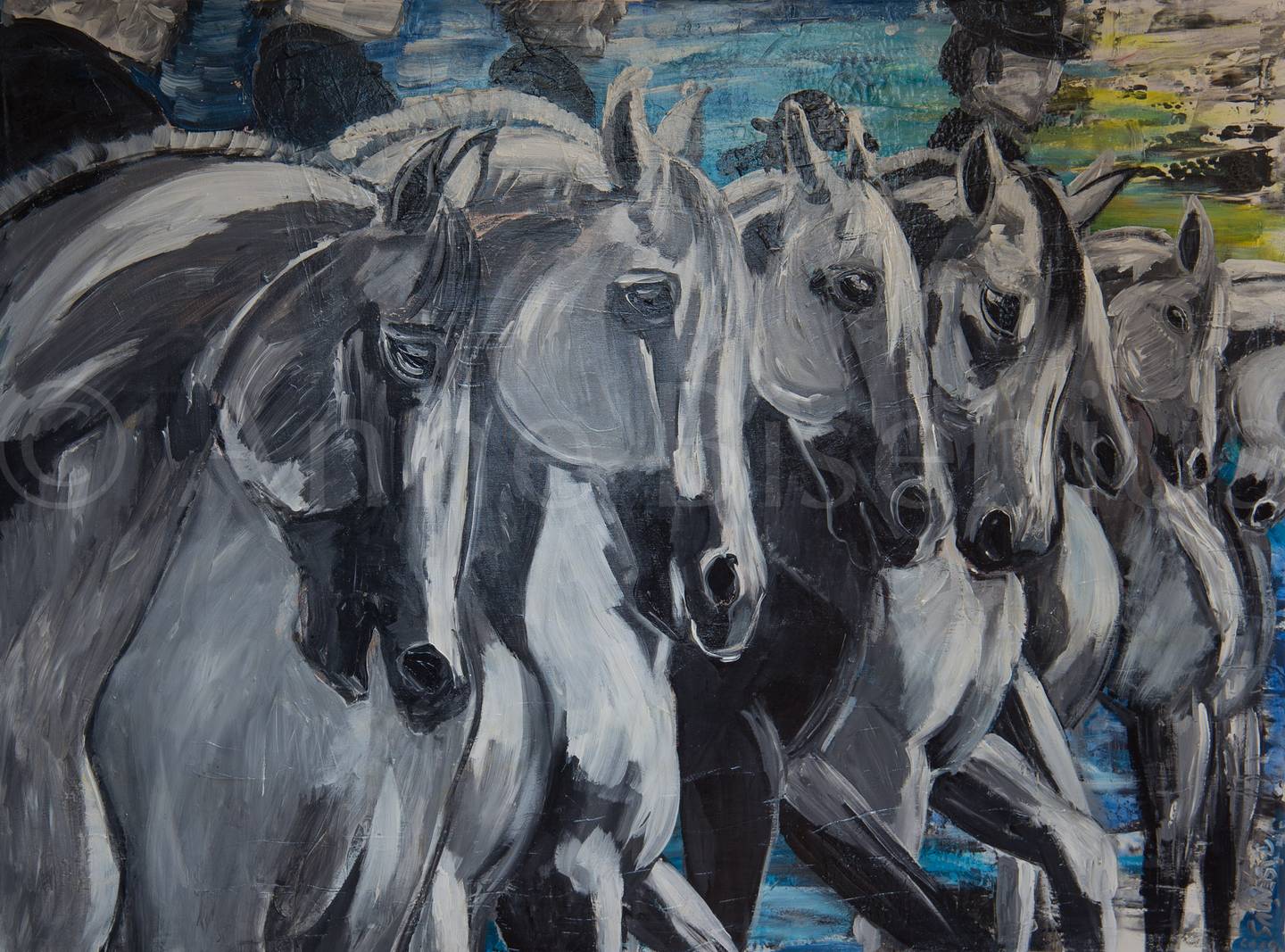 Doch die Einflüsse auf ihre Werke beschränken sich nicht allein auf die Welt der Pferde. Eine andere Leidenschaft von Anne Bisenius ist der Flamenco. Die Rhythmen und die Kraft dieser Musik fließen in ihre Pinselstriche ein und schaffen eine einzigartige Symbiose zwischen Klang und Farbe.