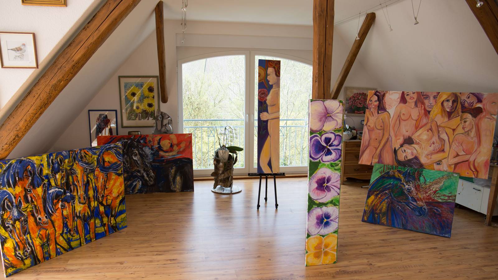 Neben der Pferdekunst findet sich in ihrem Repertoire auch die Aktmalerei. Hier zeigt sich ihre Fähigkeit, die Schönheit des menschlichen Körpers in ihrer Kunst einzufangen. Mit beeindruckender Sensibilität und einer gekonnten Spielerei von Licht und Schatten schafft sie Werke, die die natürliche Anmut des menschlichen Formenreichtums zum Ausdruck bringen.